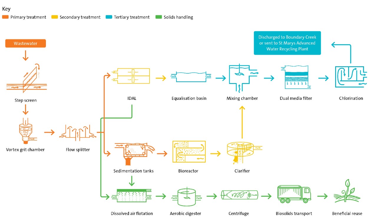 Environmental discharge: We send the remainder to the St Marys Advanced Water Recycling Plant for advanced treatment. The water is returned to Penrith and released into Boundary Creek. It flows to the Nepean River.